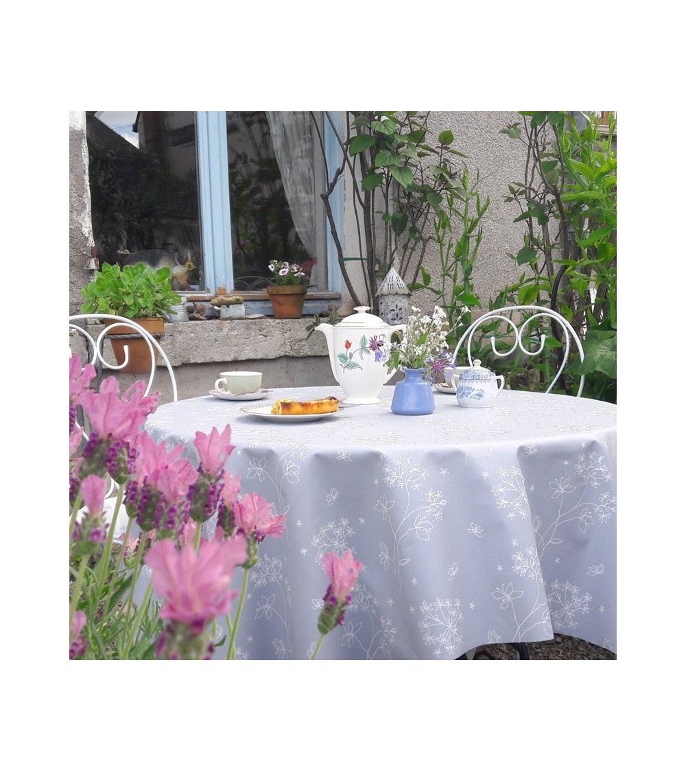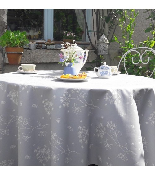 Matière : Coton enduit - Finition : Ourlée - La collection Astrance reprend un classique de la végétation de montagne: l'astrance. Les fleurs stylisées donnent un sérieux coup de jeune au thème montagne et lui donnerait presque un petit air scandinave. Ici en gris et blanc, le motif Astrance est également décliné en 4 autres coloris. Nappe de table imperméable et anti-tache : La Nappe enduite ronde ou ovale Astrance gris/blanc Fleur de Soleil est réalisée en coton enduit de haute qualité et résiste aux taches de toute la famille (vin, café, chocolat, sauce tomate, huile...) Fabrication 100% française : Le tissu Fleur de Soleil est tissé, blanchi, imprimé et enduit dans les Vosges, à Gérardmer. Tissu écologique : Impression du tissu certifiée Oeko-Tex classe I (les bébés peuvent le mettre à la bouche), enduction sans produits toxiques, sans PVC, sans phtalates Entreprise socialement responsable : les commandes sont réalisées et expédiées par un ESAT (Etablissement Spécialisé d'Aide par le travail) permettant à des handicapés de travailler en milieu ''protégé''. Nappe facile d'entretien : La Nappe enduite ronde ou ovale Astrance grise s'entretient d'un coup d'éponge humide après chaque repas. Vinaigre d'alcool ou eau de Javel pour bien nettoyer. Lavage en machine possible occasionnellement à 30 C sans produit adoucissant ni essorage. Repassage obligatoire sur l'envers en position coton ou sur l'endroit avec une patte-mouille.