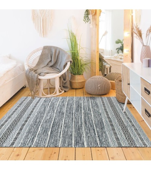 Tapis 100% coton blanc-noir 120x170