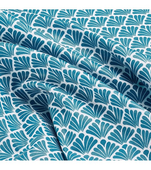 L'enduction acrylique est dotée d'une couche de téflon et d'une couche de résine fluorée bio qui se réactive au repassage. L'enduction assure un entretien facile, un coup d'éponge suffit ! Le traitement déperlant permet au liquide de glisser sur la surface de la nappe