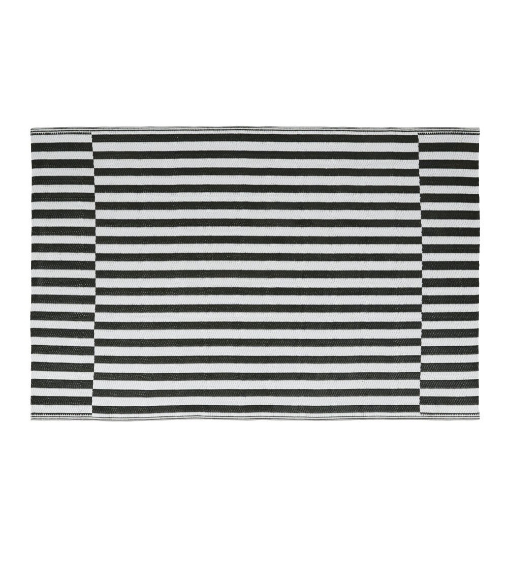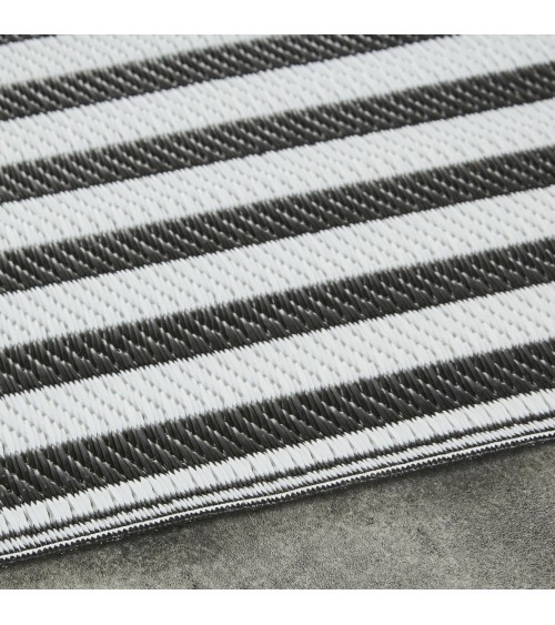 Tapis en polypropylène tissé motifs à rayures noires et blanches 120x180