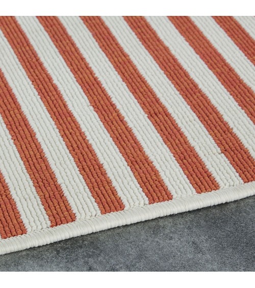 Tapis en polypropylène motifs à rayures écrues et brique 140x200