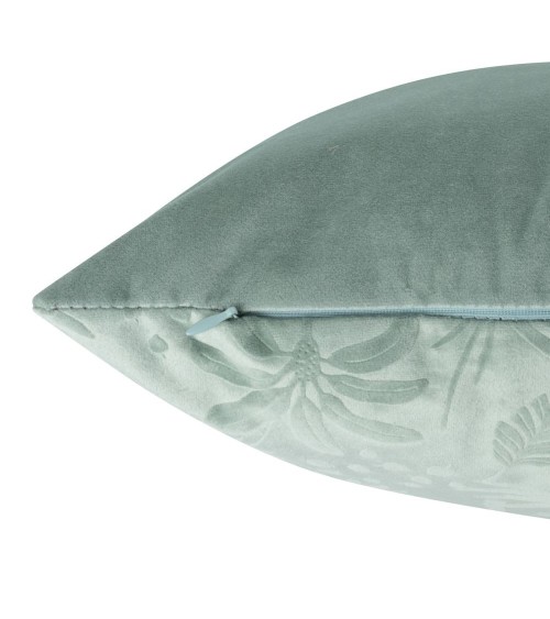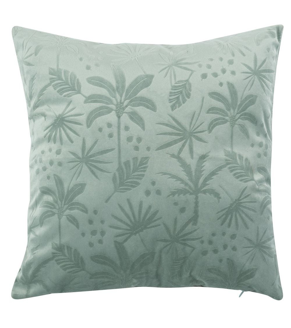 Housse de coussin en velours motif tropical embossé bleu et vert 40x40