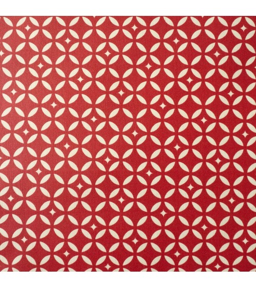 Matière : Coton enduit - Finition : Ourlée - La collection Mosaïque vous ravira si vous aimez la tendance des carreaux de ciment. Le motif inspiré d'ancienne céramique devient un motif géométrique et très moderne grâce aux couleurs que nous avons développées. Ici en rouge, le motif Mosaïque est également décliné en 3 autres coloris. Nappe de table imperméable et anti-tache : La Nappe enduite ronde ou ovale Mosaïque rouge Fleur de Soleil est réalisée en coton enduit de haute qualité et résiste aux taches de toute la famille (vin, café, chocolat, sauce tomate, huile...) Fabrication 100% française : Le tissu Fleur de Soleil est tissé, blanchi, imprimé et enduit dans les Vosges, à Gérardmer. Tissu écologique : Impression du tissu certifiée Oeko-Tex classe I (les bébés peuvent le mettre à la bouche), enduction sans produits toxiques, sans PVC, sans phtalates Entreprise socialement responsable : les commandes sont réalisées et expédiées par un ESAT (Etablissement Spécialisé d'Aide par le travail) permettant à des handicapés de travailler en milieu ''protégé''. Nappe facile d'entretien : La Nappe enduite Mosaïque rouge s'entretient d'un coup d'éponge humide après chaque repas. Vinaigre d'alcool ou eau de Javel pour bien nettoyer. Lavage en machine possible occasionnellement à 30 C sans produit adoucissant ni essorage. Repassage obligatoire sur l'envers en position coton ou sur l'endroit avec une patte-mouille.