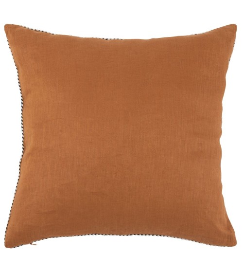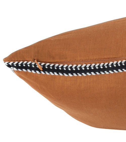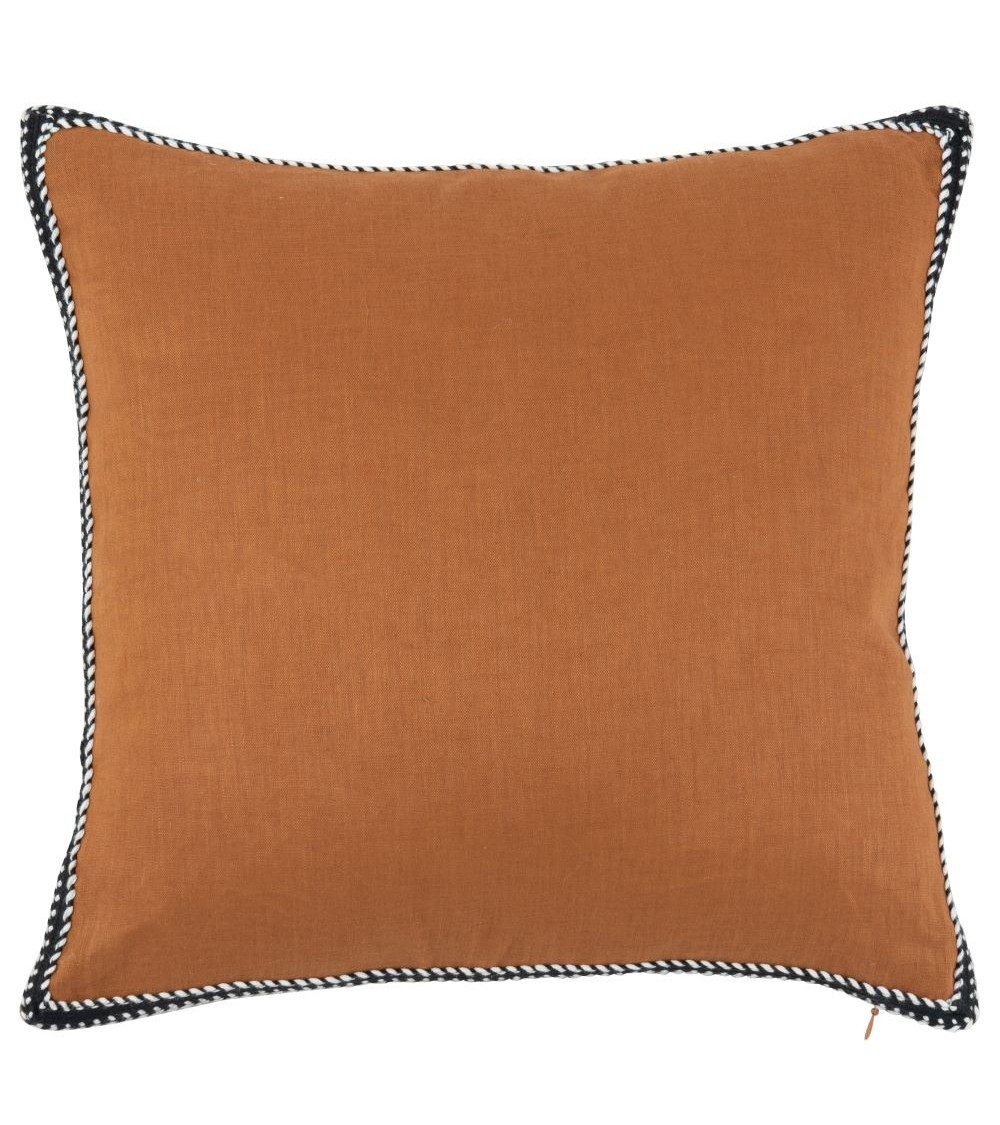 Housse de coussin en lin ocre avec galon tissé noir 40x40