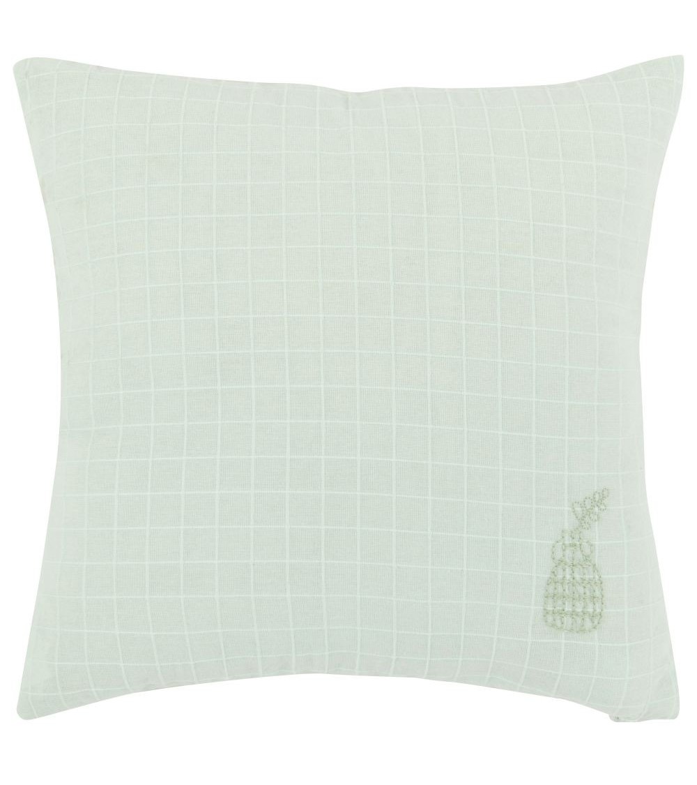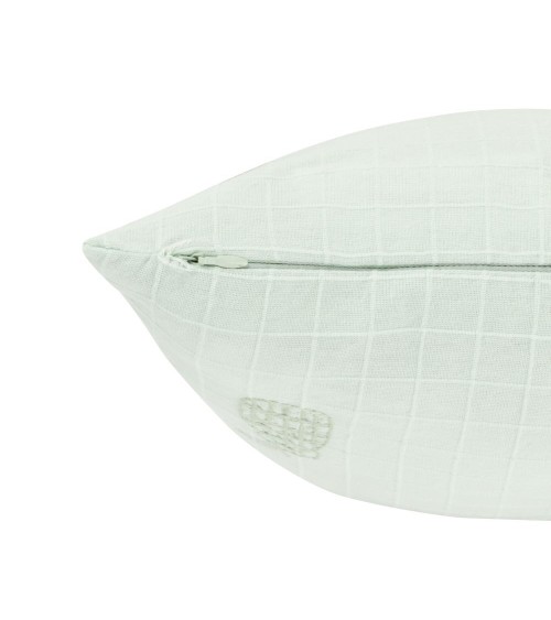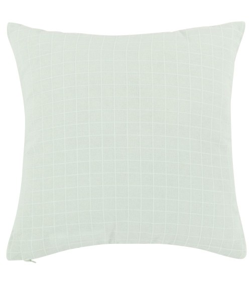 Housse de coussin en coton brodé motifs à carreaux texturés vert d'eau 40x40