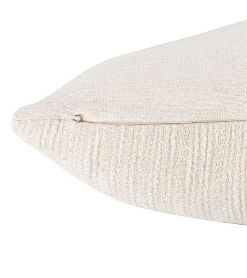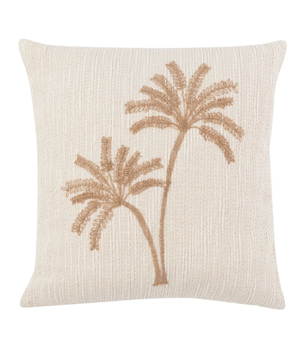 Housse de coussin en coton texturé et jute motif palmier brodé écru 40x40