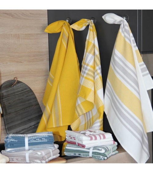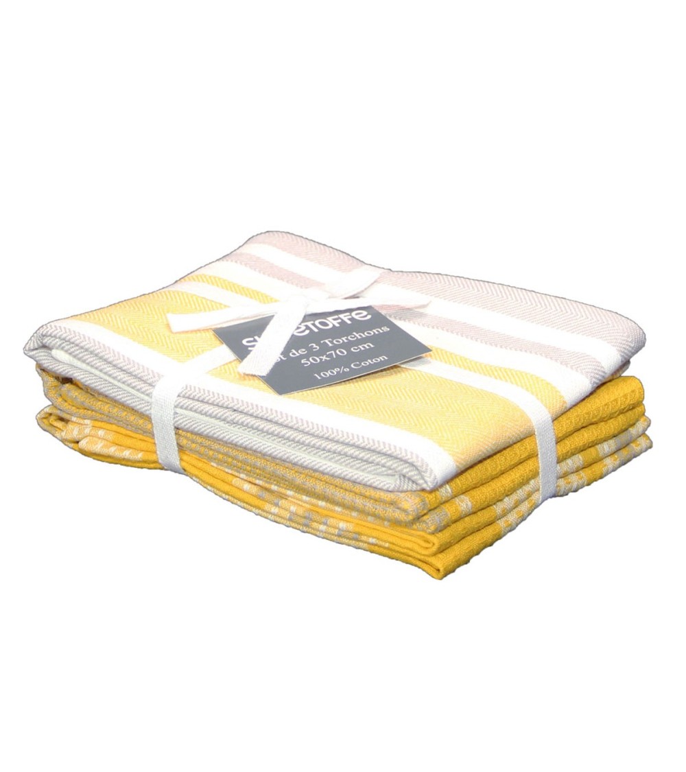 Lot de 3 torchons de cuisine* aux motifs actuels qui apporteront de la couleur et une note fantaisie à votre intérieur. Ceux-ci sont en 100% coton. Lavable en machine à 40°. 4 coloris sont disponibles: curry, rouge, lin et anthracite. Vendus par 3. * bien les lavés avant la première utilisation pour ne pas qu'ils ''peluchent