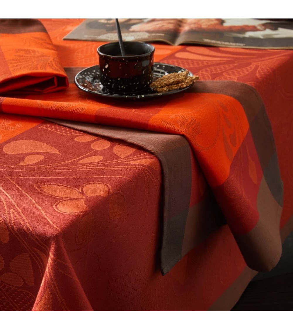 Bengale est un modèle iconique dont les dessins très travaillés sont inspirés des broderies indiennes mais aussi des tampons d'impression artisanaux. Leur format extra-large donne un souffle de modernité aux traditionnels motifs orientaux, sophistiqués par le jeu de trois armures différentes. Les coloris chauds des variantes Bengali et Tigre font référence aux soies, saris et épices. Les couleurs traverseront les âges sans perdre leur éclat grâce à la qualité des fils et teintures utilisés.Avec leur décor coordonné, les serviettes de table Bengale contrastent joliment avec les nappes, petits carrés, sets et chemins de table de la collection. Nos produits sont tissés en 100% coton, peigné longues fibres, pour vous garantir une qualité supérieure. Les fibres les plus longues produisent un linge au toucher doux, parfaitement lisse et résistant ; la finesse des fils peignés apporte une brillance et une précision incomparable à nos motifs.Parce qu'avoir confiance dans nos produits est primordial, Le Jacquard Français fabrique des produits bénéficiant du label STANDARD 100 d'OEKO-TEX.Créée en 1992, ce label international indépendant garantit un usage limité et strictement contrôlé de substances dangereuses pour la santé et l'environnement lors de la confection de textiles et ce, à tous les stades de sa transformation.Le Jacquard Français applique un traitement spécifique pour limiter le rétrécissement du coton au lavage. Notre coton reste stable dans le temps et les produits conservent leurs proportions pour vous donner entière satisfaction.