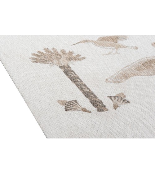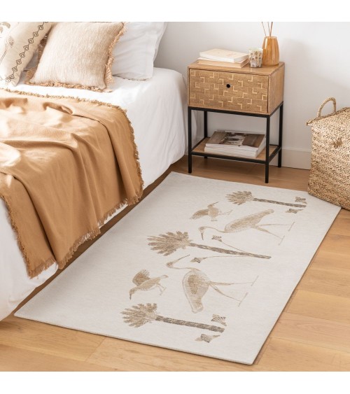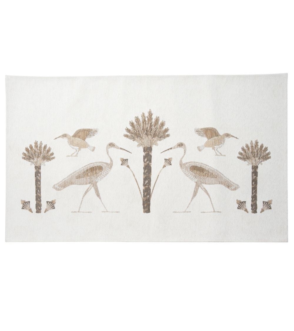 Tapis tissé jacquard motifs palmier écrus, verts et beiges 90x150