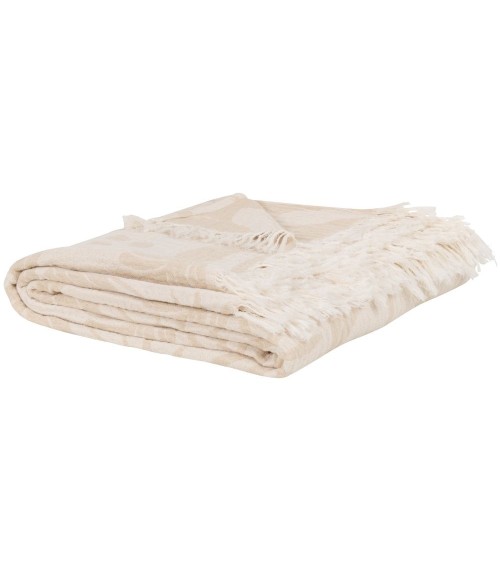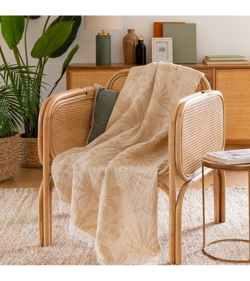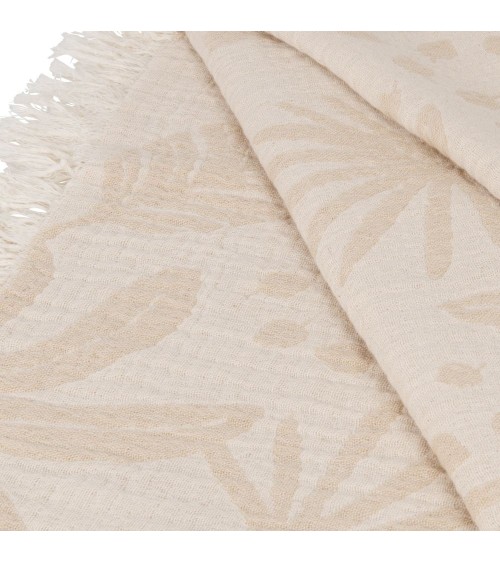 Plaid en coton tissé jacquard à franges imprimé tropical multicolore et écru 130x170