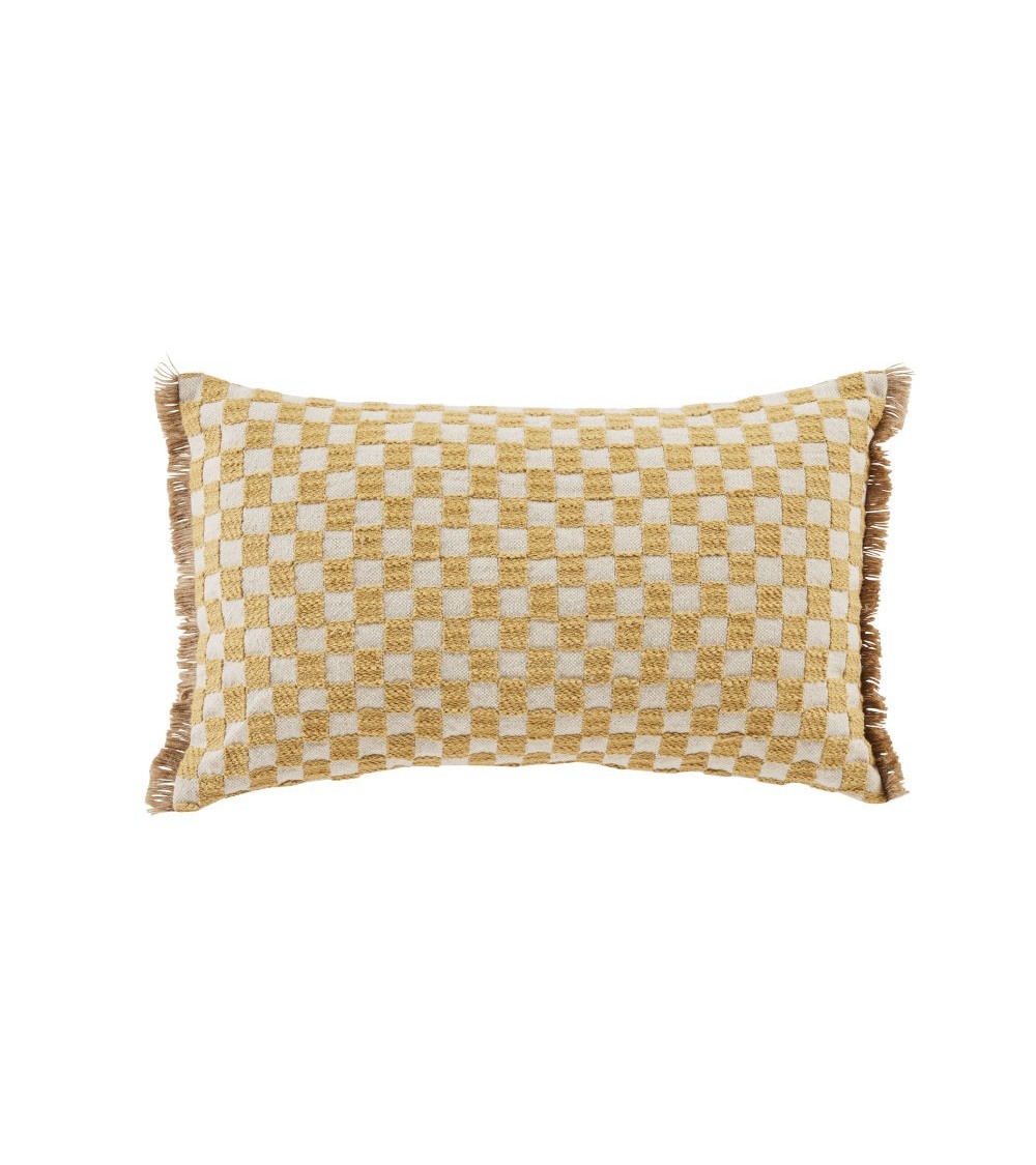 Le damier revient au goût du jour avec le coussin en coton brodé à frange 50x30 NARIZ. Pour une déco chic ou classique, on vous donne un petit conseil déco : disposez ce coussin en coton sur des assises blanc crème en daim pour qu'il fasse son effet comme il se doit !