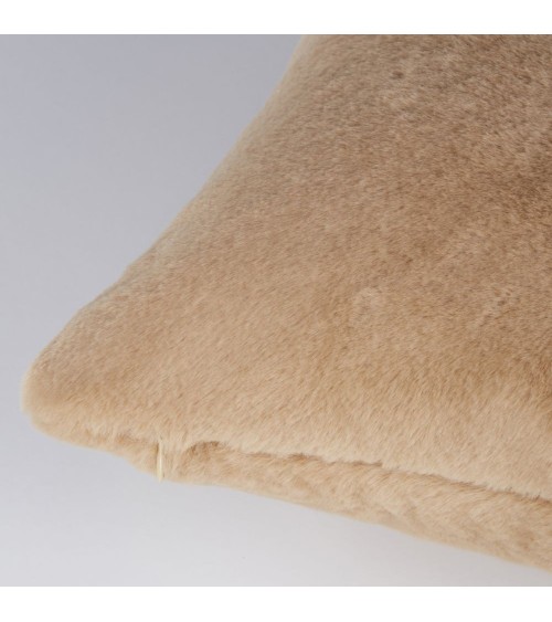 Coussin en polyester recyclé imitation fourrure moka 45x45