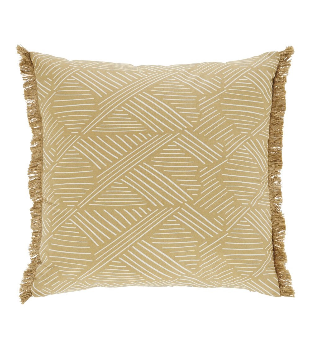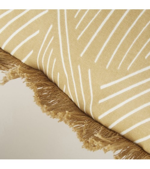 Vous aimez les tissus à franges ? Les créations originales ? Alors craquez pour le coussin en coton imprimé beige et aupe PEGUERA ! Ses extrêmités vous feront retomber en enfances, tandis que son colori beige et ses traits graphiques vous ramèneront dans une ambiance ethnique chic. Alors, qui a dit que les coussins ne pouvaient pas nous faire rêver un peu ?
