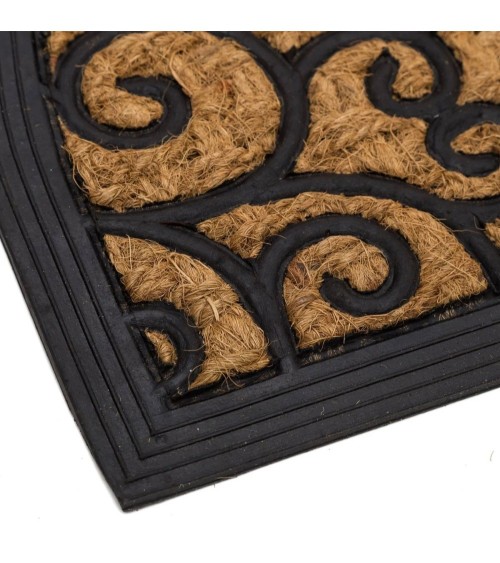 Paillasson en demi lune très élégant. Ce paillasson en caoutchouc et coco se caractérise par son look très élégant avec ses motifs classiques. Ce paillasson efficace et déco trouvera sa place devant votre porte d'entrée! Vous apprécierez son style unique et discret qui vous permet de stopper les saletés à votre porte ! Dimensions: 59.5x40x0.75cm - Couleur: Marron et Noir - Matière: Coco et Caoutchouc