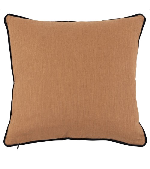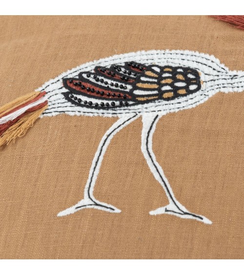 Housse de coussin en ramie jaune ocre motif animalier multicolore 40x40