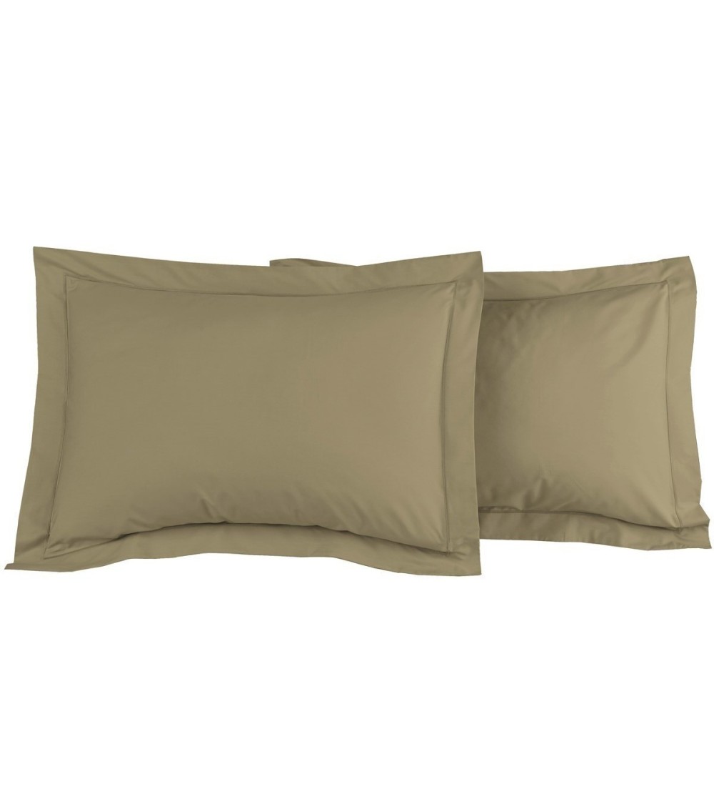 Lot de 2 taies d'oreiller en percale de coton taupe 50x70 cm