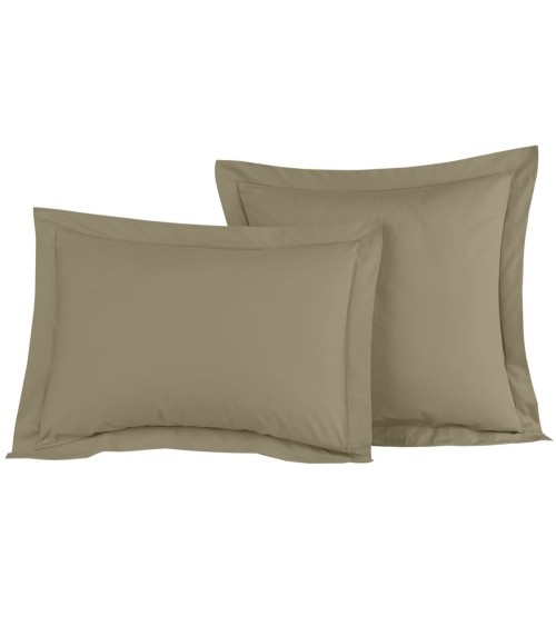Lot de 2 taies d'oreiller en percale de coton taupe 65x65 cm