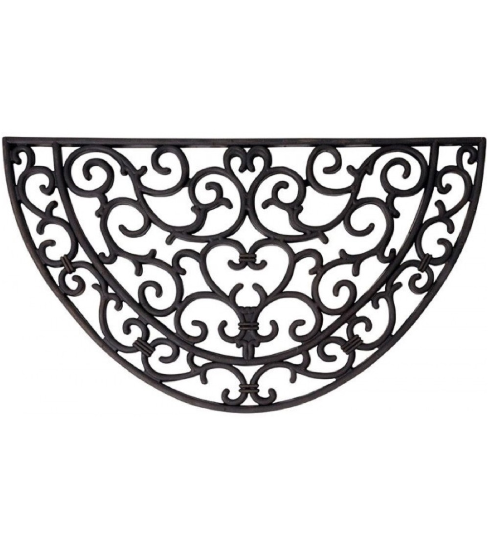 Paillasson en caoutchouc noir, forme demi-lune, avec motifs arabesques. Dimensions: 68x40x1.5m - Matière: Caoutchouc - Couleur: Noir