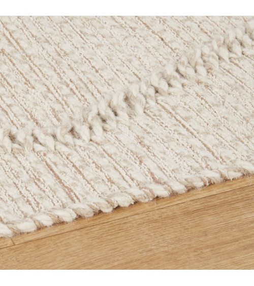 Tapis tissé main en laine, coton et jute beiges motifs en relief 140x200
