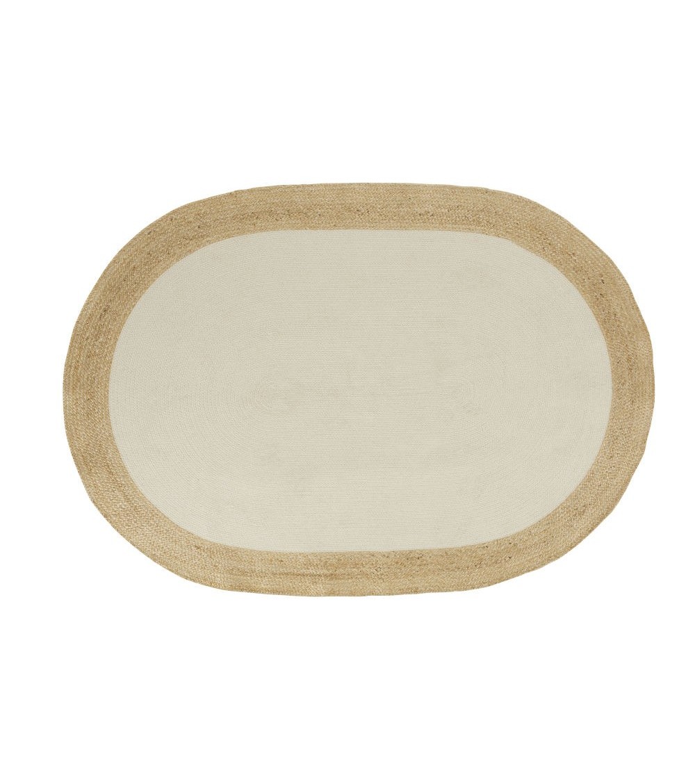 Tapis ovale en coton recyclé et jute blanc et beige 140x200