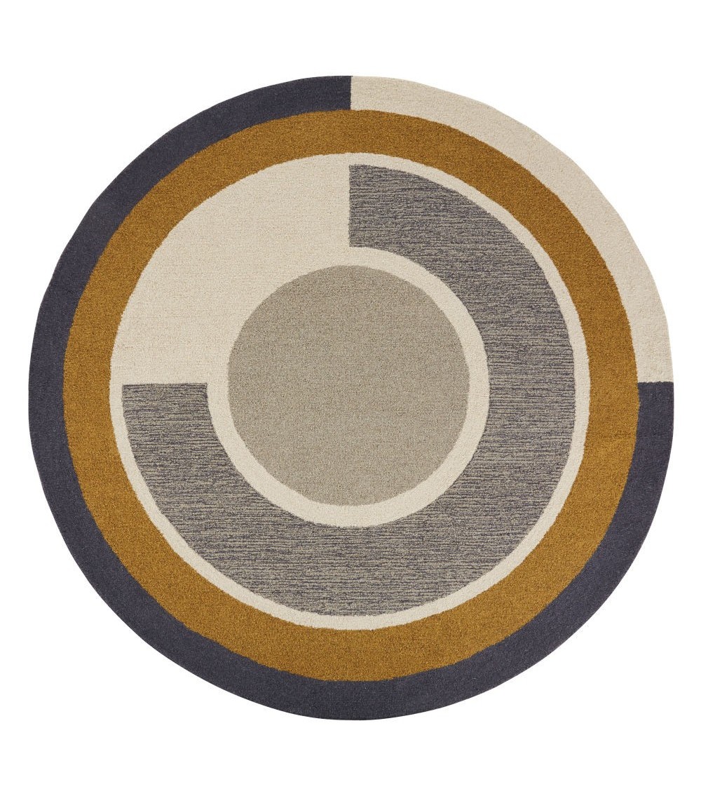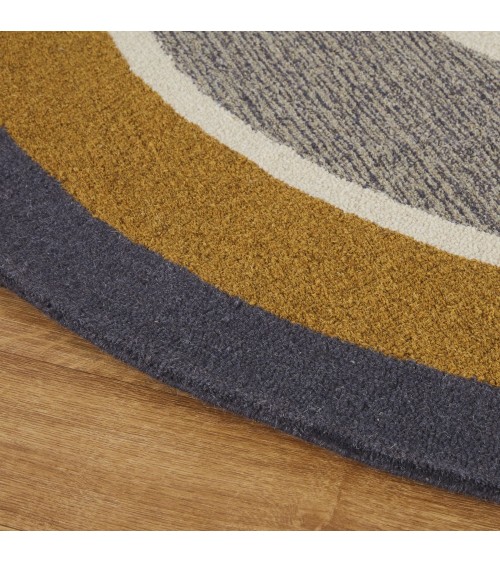 Tapis rond en laine et coton recyclé marron caramel, gris et blanc D200