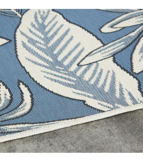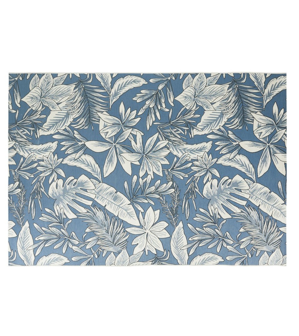 Tapis tissé jacquard imprimé végétal bleu et blanc 160x230