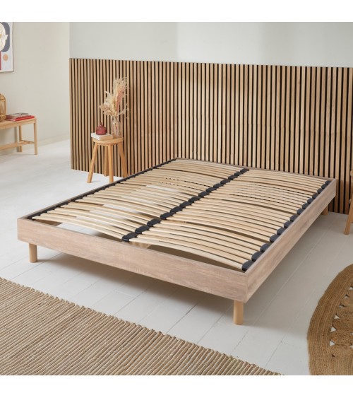 « Produit à usage professionnel et particulier »Ce sommier en bois à Lattes ''Made in France'' s'adaptera dans tous types d'intérieurs. Il se marie dans tous types de pièces grâce à son coloris bois naturel tendance. Doté d'une structure robuste et rigide, celui-ci est renforcé par un renfort transversal. Une poutre centrale est fixée au cadre avec des équerres métalliques. Le sommier dispose de 4 zones de confort : épaule, torse, lombaire et bassin. Il a été conçu en bi-lattes de façon à vous apporter flexibilité et confort de couchage. Les embouts des lattes reposent sur un tasseau fixé au cadre et sont insérés sur le côté pour éviter toute possibilité d'arrachement. La densité élevée de 26 lattes et 28 lattes par couchage permet d'utiliser ce sommier pour tous les types de matelas.. Nos matelas et nos sommiers sont soumis à une réglementation stricte. Afin de respecter la norme AFNOR, ceux-ci peuvent varier en longueur (entre 10 à 40 mm) et en largeur (entre 5 à 20 mm), pour qu'ils puissent entrer dans des cadres de lit, qui sont eux-mêmes côtés de façon normée. Ex : un achat en 140 x 190 cm peut mesurer 138 x 188 cm. Cette norme est obligatoire pour tous les fabricants de literie.