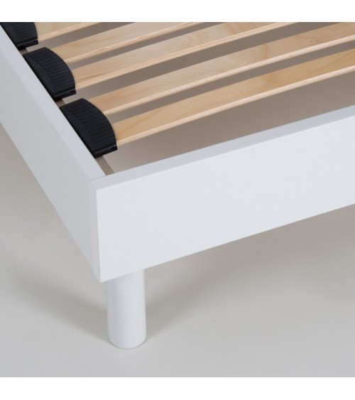 « Produit à usage professionnel et particulier »Ce sommier en bois à Lattes ''Made in France'' s'adaptera dans tous types d'intérieurs. Il se marie dans tous types de pièces grâce à son coloris blanc tendance. Doté d'une structure robuste et rigide, celui-ci est renforcé par un renfort transversal. Une poutre centrale est fixée au cadre avec des équerres métalliques. Le sommier dispose de 4 zones de confort : épaule, torse, lombaire et bassin. Il a été conçu en bi-lattes de façon à vous apporter flexibilité et confort de couchage. Les embouts des lattes reposent sur un tasseau fixé au cadre et sont insérés sur le côté pour éviter toute possibilité d'arrachement. La densité élevée de 26 lattes et 28 lattes par couchage permet d'utiliser ce sommier pour tous les types de matelas.. Nos matelas et nos sommiers sont soumis à une réglementation stricte. Afin de respecter la norme AFNOR, ceux-ci peuvent varier en longueur (entre 10 à 40 mm) et en largeur (entre 5 à 20 mm), pour qu'ils puissent entrer dans des cadres de lit, qui sont eux-mêmes côtés de façon normée. Ex : un achat en 140 x 190 cm peut mesurer 138 x 188 cm. Cette norme est obligatoire pour tous les fabricants de literie.