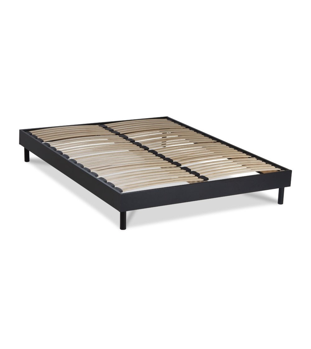 « Produit à usage professionnel et particulier »Ce sommier en bois à Lattes ''Made in France'' s'adaptera dans tous types d'intérieurs. Il se marie dans tous types de pièces grâce à son coloris noir tendance. Doté d'une structure robuste et rigide, celui-ci est renforcé par un renfort transversal. Une poutre centrale est fixée au cadre avec des équerres métalliques. Le sommier dispose de 4 zones de confort : épaule, torse, lombaire et bassin. Il a été conçu en bi-lattes de façon à vous apporter flexibilité et confort de couchage. Les embouts des lattes reposent sur un tasseau fixé au cadre et sont insérés sur le côté pour éviter toute possibilité d'arrachement. La densité élevée de 26 lattes et 28 lattes par couchage permet d'utiliser ce sommier pour tous les types de matelas.. Nos matelas et nos sommiers sont soumis à une réglementation stricte. Afin de respecter la norme AFNOR, ceux-ci peuvent varier en longueur (entre 10 à 40 mm) et en largeur (entre 5 à 20 mm), pour qu'ils puissent entrer dans des cadres de lit, qui sont eux-mêmes côtés de façon normée. Ex : un achat en 140 x 190 cm peut mesurer 138 x 188 cm. Cette norme est obligatoire pour tous les fabricants de literie.