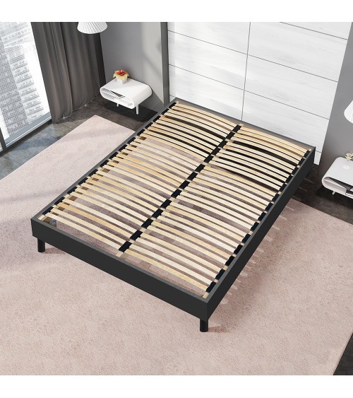 « Produit à usage professionnel et particulier »Ce sommier en bois à Lattes ''Made in France'' s'adaptera dans tous types d'intérieurs. Il se marie dans tous types de pièces grâce à son coloris noir tendance. Doté d'une structure robuste et rigide, celui-ci est renforcé par un renfort transversal. Une poutre centrale est fixée au cadre avec des équerres métalliques. Le sommier dispose de 4 zones de confort : épaule, torse, lombaire et bassin. Il a été conçu en bi-lattes de façon à vous apporter flexibilité et confort de couchage. Les embouts des lattes reposent sur un tasseau fixé au cadre et sont insérés sur le côté pour éviter toute possibilité d'arrachement. La densité élevée de 26 lattes et 28 lattes par couchage permet d'utiliser ce sommier pour tous les types de matelas.. Nos matelas et nos sommiers sont soumis à une réglementation stricte. Afin de respecter la norme AFNOR, ceux-ci peuvent varier en longueur (entre 10 à 40 mm) et en largeur (entre 5 à 20 mm), pour qu'ils puissent entrer dans des cadres de lit, qui sont eux-mêmes côtés de façon normée. Ex : un achat en 140 x 190 cm peut mesurer 138 x 188 cm. Cette norme est obligatoire pour tous les fabricants de literie.