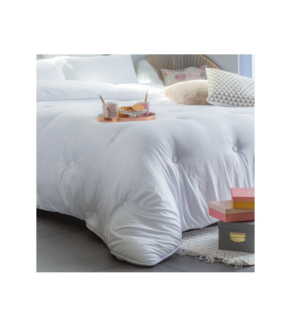 La couette PHYTOCARE vous enveloppera de douceur ! Cette couette synthétique généreuse garnissage 200 gr/m2, et son piquage capitons conservera logtemps son aspect gonflant. Son traitement phytopure à bases d'huiles essentielles vous assure une barrière efficace et naturelle contre les acariens. PHYTOCARE est une couette synthétique idéale pour le printemps ou l'été, à un prix 100 pour cent douceur. Existe en 4 dimensions Enveloppe 100 pour cent COTON TRAITREE PHYTOCARE anti.acariens végétal Garnissage 100 pour cent POLYESTER SILICONE CREUX 200g/m2.
