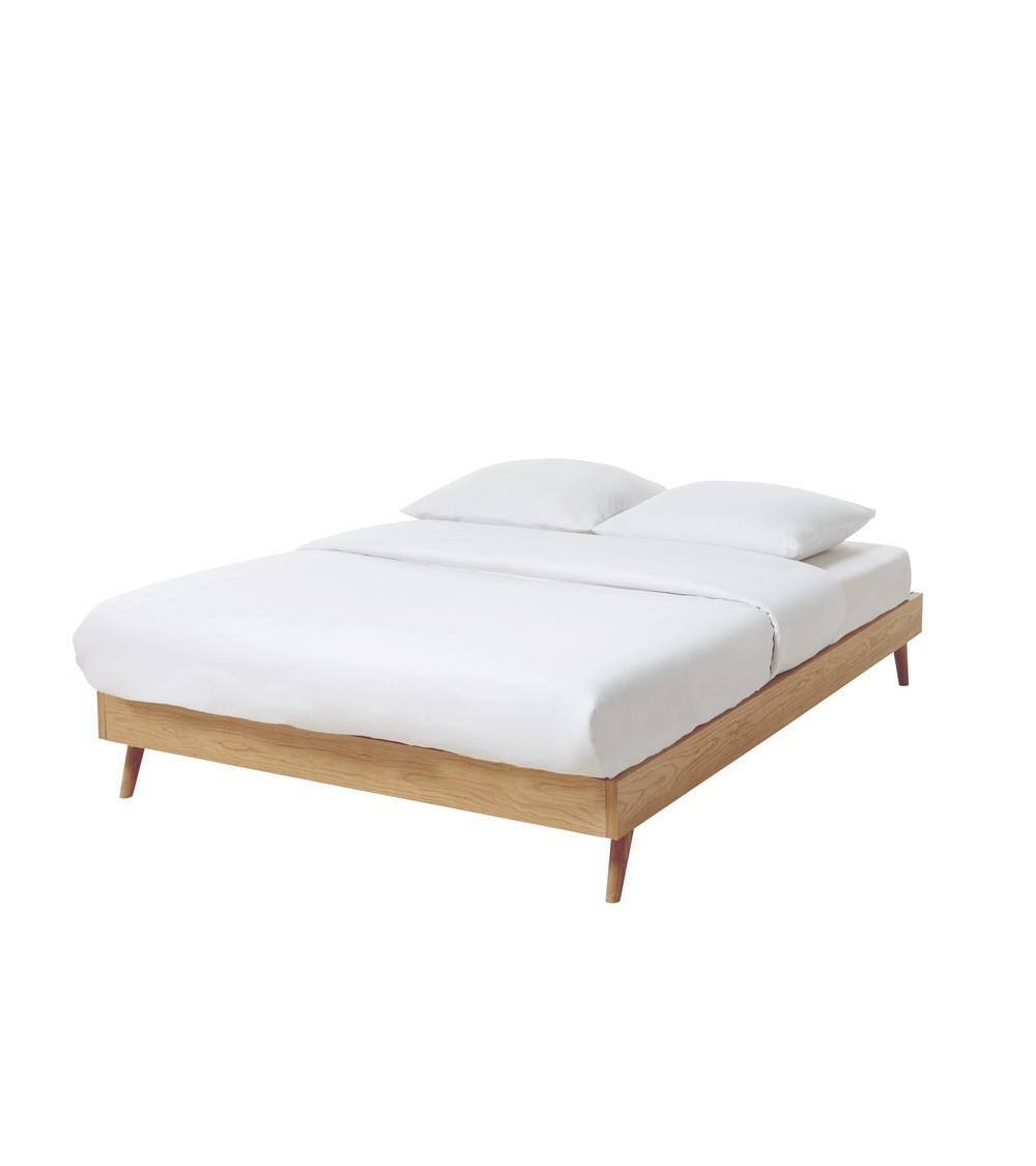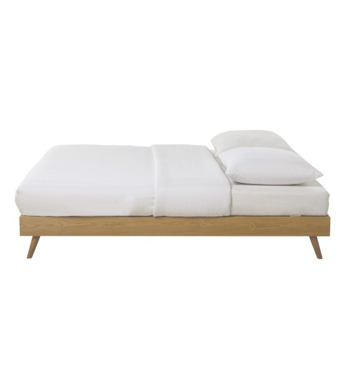 Optez pour un mobilier vintage avec le lit avec sommier à lattes 160x200 SIXTIESSes pieds obliques apportent une allure minimaliste et rétro.En bois de chêne massif, le piétement scandinave ultra design de ce lit vintage 2 places fera l'unanimité.Optez pour un soutien de qualité avec ce lit 160x200 doté d'un sommier à lattes en pin inclus.Il ne vous restera plus qu'à y installer un matelas 160x200 cm  !