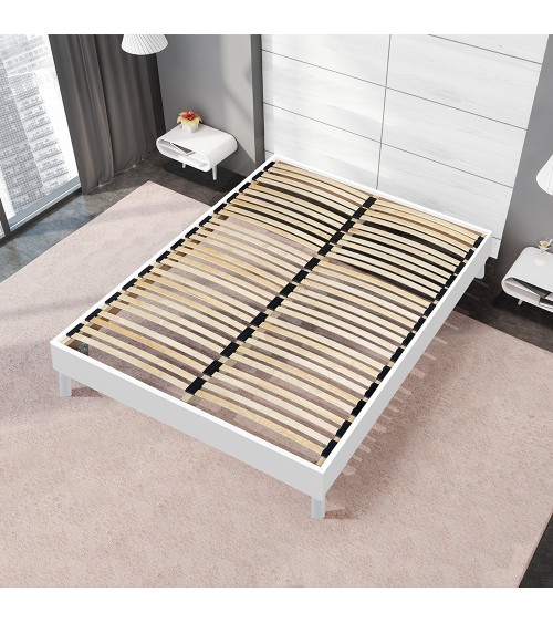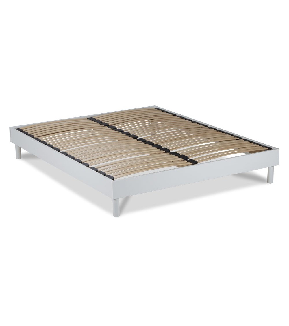 Produit à usage professionnel et particulier. Ce sommier en bois à Lattes ''Made in France'' s'adaptera dans tous types d'intérieurs. Il se marie dans tous types de pièces grâce à son coloris blanc tendance. Doté d'une structure robuste et rigide, celui.ci est renforcé par un renfort transversal. Une poutre centrale est fixée au cadre avec des équerres métalliques. Le sommier dispose de 4 zones de confort - épaule, torse, lombaire et bassin. Il a été conçu en bi.lattes de façon à vous apporter flexibilité et confort de couchage. Les embouts des lattes reposent sur un tasseau fixé au cadre et sont insérés sur le côté pour éviter toute possibilité d'arrachement. La densité élevée de 26 lattes et 28 lattes par couchage permet d'utiliser ce sommier pour tous les types de matelas.. Nos matelas et nos sommiers sont soumis à une réglementation stricte. Afin de respecter la norme AFNOR, ceux.ci peuvent varier en longueur (entre 10 à 40 mm) et en largeur (entre 5 à 20 mm), pour qu'ils puissent entrer dans des cadres de lit, qui sont eux.mêmes côtés de façon normée. Exemple, un achat en 140 x 190 cm peut mesurer 138 x 188 cm. Cette norme est obligatoire pour tous les fabricants de literie.