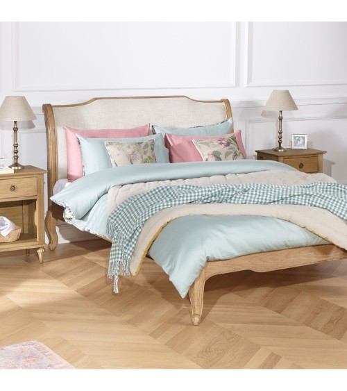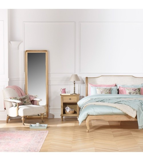 Description du produit -Sublimez votre chambre avec le charme intemporel de notre lit double ELIZA.Sa structure et ses pieds en chêne massif cérusé subliment son allure, tandis que sa tête de lit rembourrée en tissu 100 pour cent lin apporte une touche de douceur.Ses lignes élégantes et galbées, ainsi que sa tête de lit aux courbes douces, ajoutent une sophistication discrète à votre espace.Notre lit queen size de 160 x 200 cm, vous offre tout l'espace nécessaire pour un sommeil de qualité.Livré avec 10 lattes en multiplis à assembler, ELIZA est une invitation à la relaxation dans un univers shabby chic.Pour une harmonie parfaite, nous vous invitons à découvrir le chevet ELIZA assorti.Le + produit - Profitez de nuits paisibles avec notre lit Queen size ELIZA.Son design sophistiqué, associé à des dimensions généreuses, apporte une touche de luxe à votre chambre tout en offrant un confort optimal.