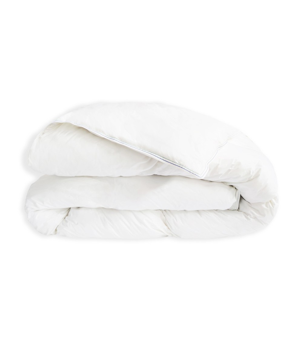 Cette couette est eco.responsable - son enveloppe est en percale 100 pour cent coton 91 fils/cm². Son garnissage est en duvet et plumettes recyclés de canard et oie. Enfin, son packaging est en carton recyclé et recyclable. Confortable, elle offre un garnissage léger qui convient particulièrement aux dormeurs sensibles à la chaleur, aux chambres chauffées à plus de 18 degré, aux régions les plus chaudes et pour l'été. Son garnissage en duvet et plumettes est naturellement thermo régulant, respirant, léger, gonflant et hypoallergénique. L' enveloppe en percale de coton naturel offre une grande douceur. Une finition passepoil blanc ainsi qu'une double surpiqure vert forêt et bleu viennent sublimer la couette.Composition du tissu - Percale 100 pour cent coton naturel 91 fils/cm² . Composition du garnissage - 70 pour cent duvet 30 pour cent plumettes de canard et oie recyclés