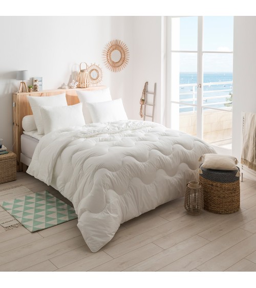 Laissez.vous séduire par le confort et la légèreté du garnissage de cette couette chaude. La certification ECOLABEL confère à la fibre employée une garantie environnementale importante.Cette couette sera parfaite pour une utilisation l'hiver et/ou si vous êtes sensible au froid. La fibre innovante creuse et siliconée en Polyester Thermolite® Reflex assure un confort optimal, une bonne circulation de l'air et un gonflant incroyable. Cette fibre conserve parfaitement la chaleur et évacue efficacement l'humidité grâce à sa technologie unique.Son enveloppe, composée d'un mélange intime de coton et de polyester, offre un toucher très agréable.Le piquage vague donne de l'élégance à votre couette et assure une répartition homogène de la fibre. Fabriquée en France, ses finitions soignées sont réalisées à la main pour une résistance supérieure.Composition du tissu - 65 pour cent polyester . 35 pour cent coton . Composition du garnissage - 100 pour cent Thermolite Ultra polyester . certified ECOLABEL.Les informations environnementales de ce produit sont les suivantes - produit majoritairement recyclable, composé à minima de 0 pour cent de matières recyclées, ne comporte pas de substances dangereuses.