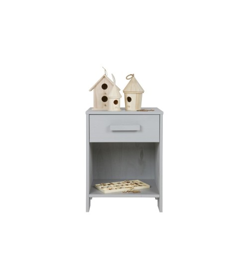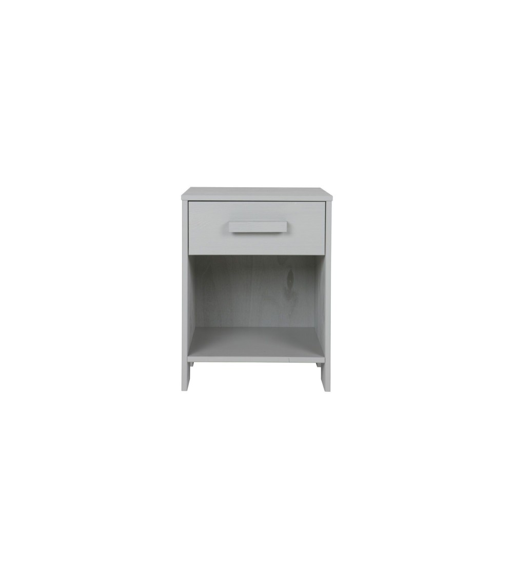 La table de chevet en bois FSC Denis donne une touche scandinave et authentique à votre pièce. Elle est idéale pour meubler une chambre d'enfant ou d'ado, voire pour donner du style à la chambre des parents. Pratique, elle dispose d'un tiroir dans lequel les petits peuvent ranger leurs jouets et, les plus grands, ranger leurs livres. Elle dispose aussi d'un plateau que vous pouvez décorer d'une lampe en métal, d'une lettre lumineuse ou d'une horloge vintage. Petit plus - conçue en bois certifié FSC, cette table de chevet en pin massif brossé est Made in Holland (et écologique). Le bois certifié FSC est issu de forêts européennes gérées durablement. Avec une dimension de 52 x 39 x 36 cm, on peut aisément en installer deux - une de chaque côté du lit. Et pour une chambre complète, on l'associe au lit banquette en bois FSC Denis.   Caractéristiques -Couleurs disponibles - gris béton, gris anthracite ou blancStructure - pin massif brosséOrigine - fabriqué aux Pays.BasÀ monter soi.mêmeAttention, les produits en pin massif peuvent comporter des imperfections liés aux caractéristiques de ce bois, et non à un défaut de production.