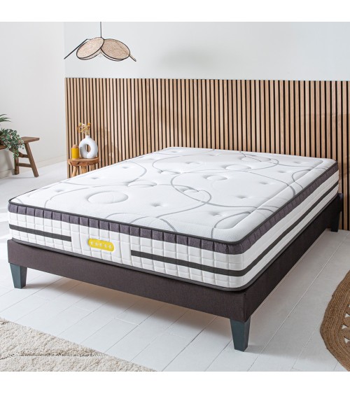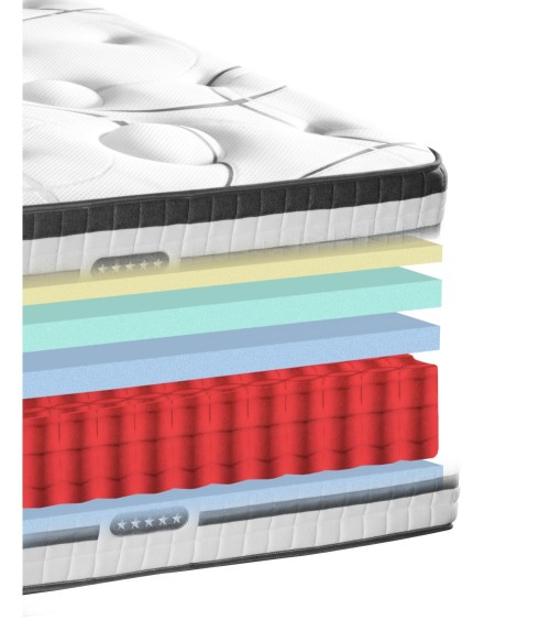 Produit à usage professionnel et particulier. Le Matelas CONCORDE offre un confort digne d'un hôtel 5 étoiles. Composé de ressorts ensachés et de mousse à mémoire de forme de technologie SensoTouch ®, ce matelas apportera soutien et fermeté à tous ses utilisateurs.Les nombreux ressorts ensachés (800 sur la base d'un 140) confèrent au matelas une excellente indépendance de couchage permettant de dormir à deux sans se déranger l'un l'autre. La mémoire de forme et la mousse hyper soft dernière génération Vefer+ ® vous apporteront, quant à elles, une sensation d'apesanteur. Elles soulageront vos points de pressions et amélioreront votre circulation sanguine. Enfin, la qualité du tissu et la bande d'aération 3D permettent, d'une part, à la literie de mieux respirer pour une meilleure tenue dans le temps, d'autre part de dormir sur une surface fraîche toute l'année. Dans le respect de l'environnement, ce matelas est expédié en compressé roulé pour une optimisation des transports et une réduction des émissions de CO2.Points forts -. Nombreux ressorts ensachés indépendants les uns des autres. Soulage tous vos points de pressions et limite les maux de dos. Excellente fermeté et maintien de la colonne vertébrale. Excellente indépendance de couchage. Idéal pour les problèmes de dos et les sportifs. Meilleure aération qu'un matelas mousse à mémoire de forme. Nos matelas et nos sommiers sont soumis à une réglementation stricte. Afin de respecter la norme AFNOR, ceux.ci peuvent varier en longueur (entre 10 à 40 mm) et en largeur (entre 5 à 20 mm), pour qu'ils puissent entrer dans des cadres de lit, qui sont eux.mêmes côtés de façon normée. Exemple, un achat en 140 x 190 cm peut mesurer 138 x 188 cm. Cette norme est obligatoire pour tous les fabricants de literie.