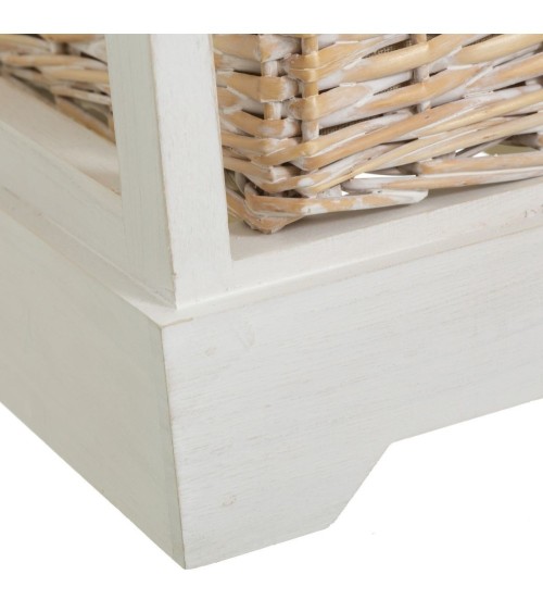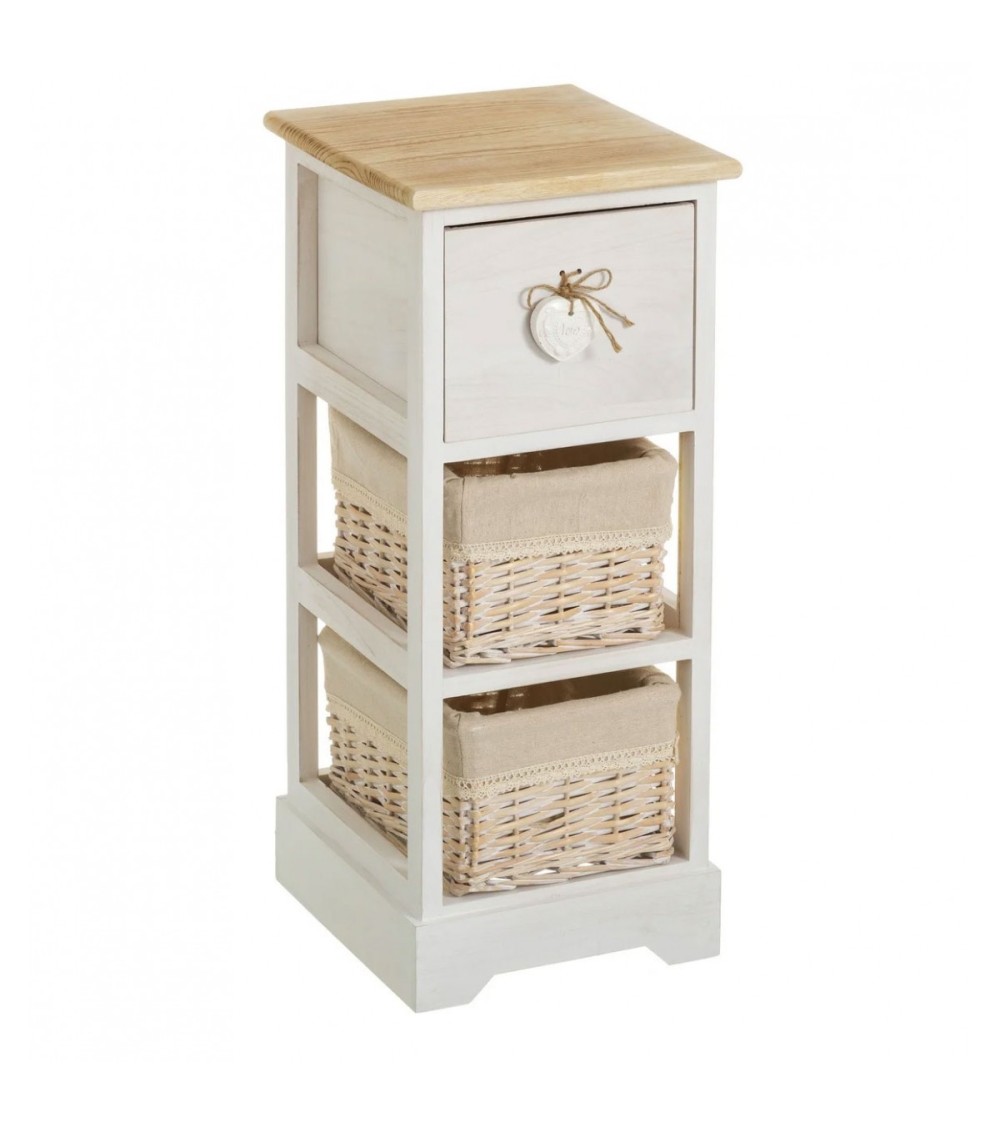 Table de chevet en bois comprenant 1 tiroir et deux paniers tressés. Cette table de chevet basse apporte une touche déco de charme. Dimensions- Longueur 26cm x largeur 32cm x Hauteur 63cmCouleur- Blanc/BoisMatière- Bois