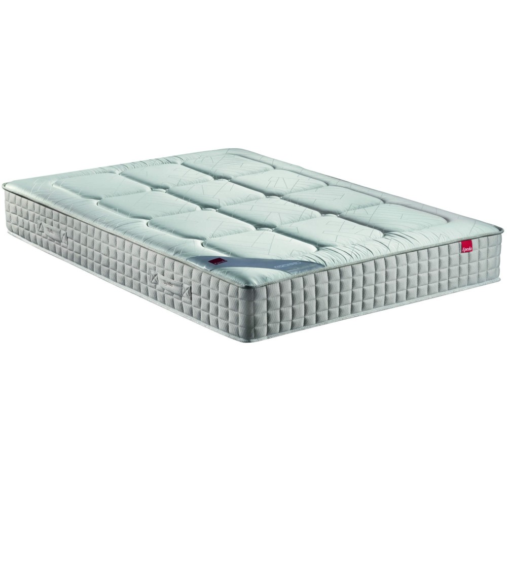 Matelas YUCCA Epeda. Gamme PuretéLa gamme Pureté vous propose des matelas confectionnés à partir de matériaux de haute qualité privilégiant des matières naturelles.Epeda, avec le matelas Yucca, vous propose de bénéficier de la technologie de Ressorts Ensachés qui vous assure une très bonne indépendance de couchage. Plus un matelas a de ressorts ensachés, plus il va être souple. Et inversement, moins il y a de ressorts plus le matelas va être ferme.Ce matelas vous apportera un excellent confort grâce à ses 3 zones de soutien qui raffermissent la zone du bassin pour un maintien du corps ultra.précis.Le Yucca vous offre 2 faces de couchage pour une plus grande longévité. Ses garnissages en mousse et fibres sont étudiés pour assurer un premier ressenti agréable lorsque vous vous allongez et une bonne ventilation. Avec le matelas Yucca, Epeda vous fait bénéficier de toute son expertise pour vous proposer un matelas qui conviendra aux dormeurs qui recherchent un confort ferme et un accueil moelleux.Reconnu depuis plus de 80 ans, le savoir.faire Epéda provient dun savant dosage de techniques artisanales et de technologies de pointe. Lassemblage et la finition de chaque pièce sont réalisés en France, dans le respect de la tradition de fabrication de la literie haut de gamme.Offrez.vous chaque nuit un confort à l'état pur, source de bien.être.Hauteur 25cm Accueil Moelleux Soutien Ferme Descriptif technique -. 600 ressorts ensachés (en 140x190) . 3 zones de confort . Deux faces de couchage- Confort adapté à chaque saison et longévité du matelas Face été/face hiver- mousse de confort et fibres hypoallergéniques. . Coutil jacquard (100 pour cent viscose) traité anti.acariens et bactériens . 4 poignées horizontales brodées- Facilité de manipulation et esthétisme . 2 aérateurs Epéda- Hygiène et aération permanente