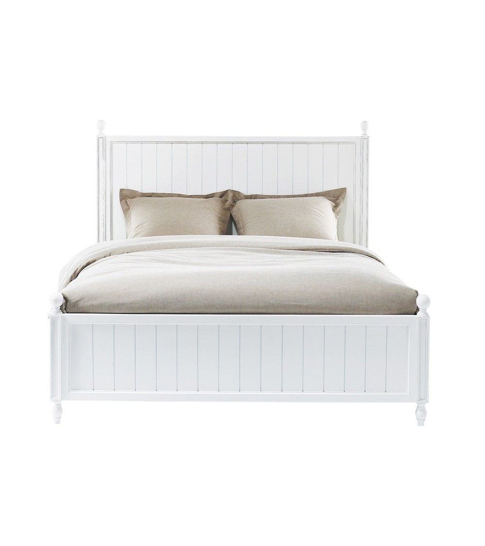 Peint dans un blanc éclatant, le lit 140 en pin blanc NEWPORT vous donne l'impression de vous endormir en vacancesSobre et classique, ce lit en bois peint créera une ambiance douce et reposante dans votre chambre à coucher.Pour 2 personnes, ce lit adulte existe aussi en modèle 160.Complétez votre cocon de douceur avec le chevet blanc Newport et la parure de lit Elégante.