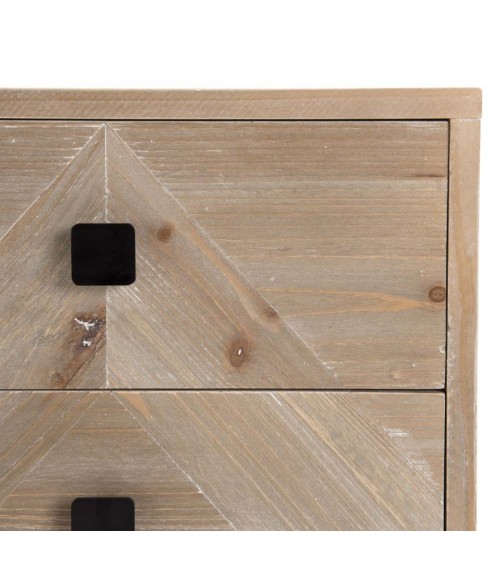 Chevet beige scandi 2 tiroirs pieds noirs Sapin. Dimensions - 48 x 36 x 54 cm. Article en MDF plaqué sapin et Sapin. Cet article est composé de bois de sapin blanchi ! La finition de cette gamme est faite pour éclaircir le bois et rendre ces meubles exclusifs. Chaque produit est unique et peut varier selon la patine. Cette petite table de chevet illuminera votre quotidien. Du matin au soir, elle apportera de la luminosité dans votre chambre et égaiera vos journées. Admirer sa teinte claire vous mettra de bonne humeur et ses petites touches de noir au niveau des poignées et du piètement apporteront un coté chic à votre pièce. Ses deux tiroirs seront très utiles pour ranger vos objets essentiels près de vous la nuit. Ce mobilier conçu en bois de sapin blanchi vous fera découvrir l'univers Scandinave à travers cette jolie collection.