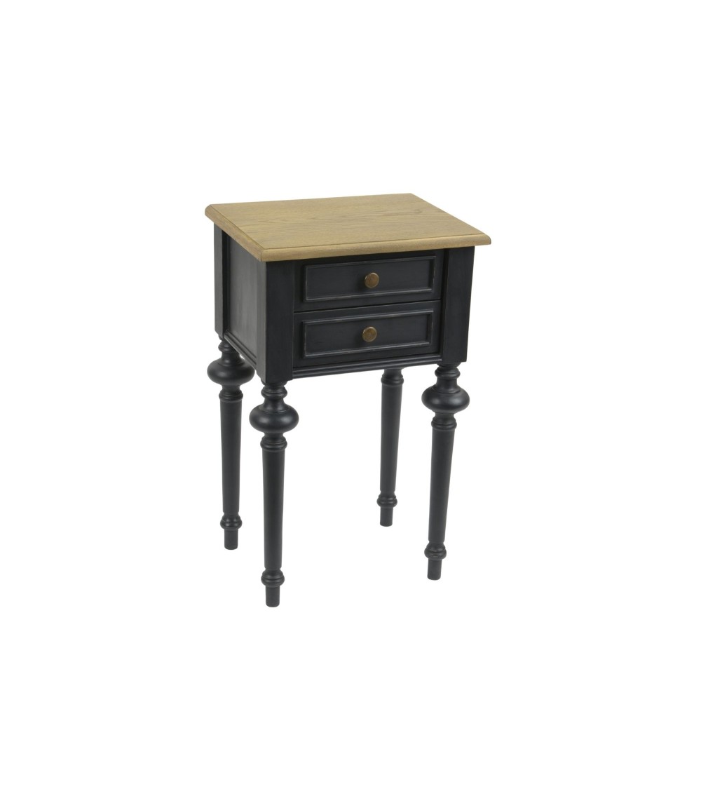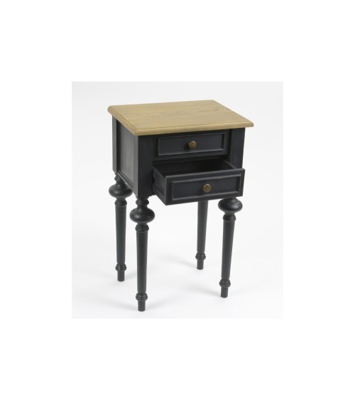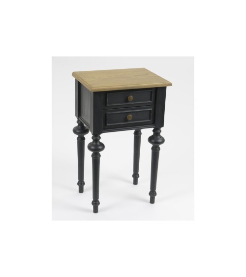 Cette table de nuit de la collection Neyla en bois patiné noir ou blanc est parfaite pour une décoration classique et romantique. Elle dispose d'un plateau en bois naturel et de deux petits tiroirs pour ranger des petits objets.Disponible en blanc ou noir / dessus bois. Description technique - Dimensions - L- 40 x P- 30 x H- 65 cm2 tiroirsColoris - noir ou blancPoids 9 Kg....