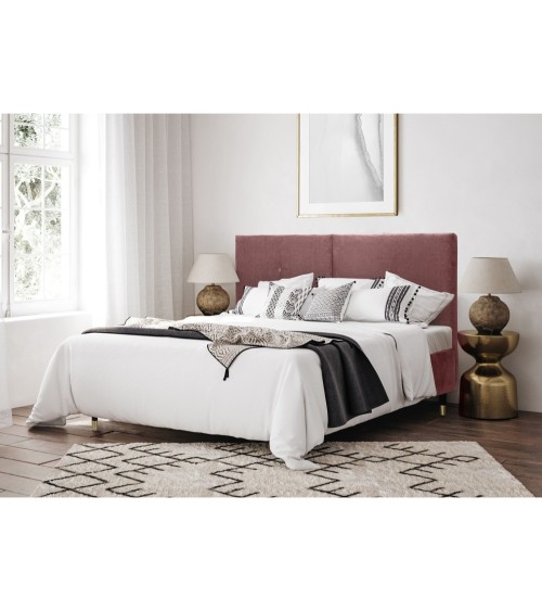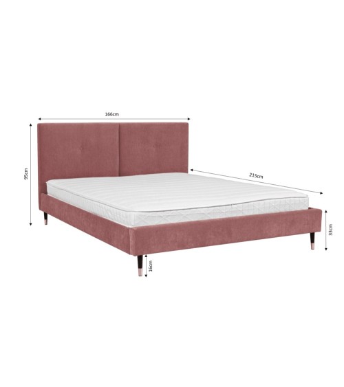 Lit avec sommier 2 places en velours vieux rose