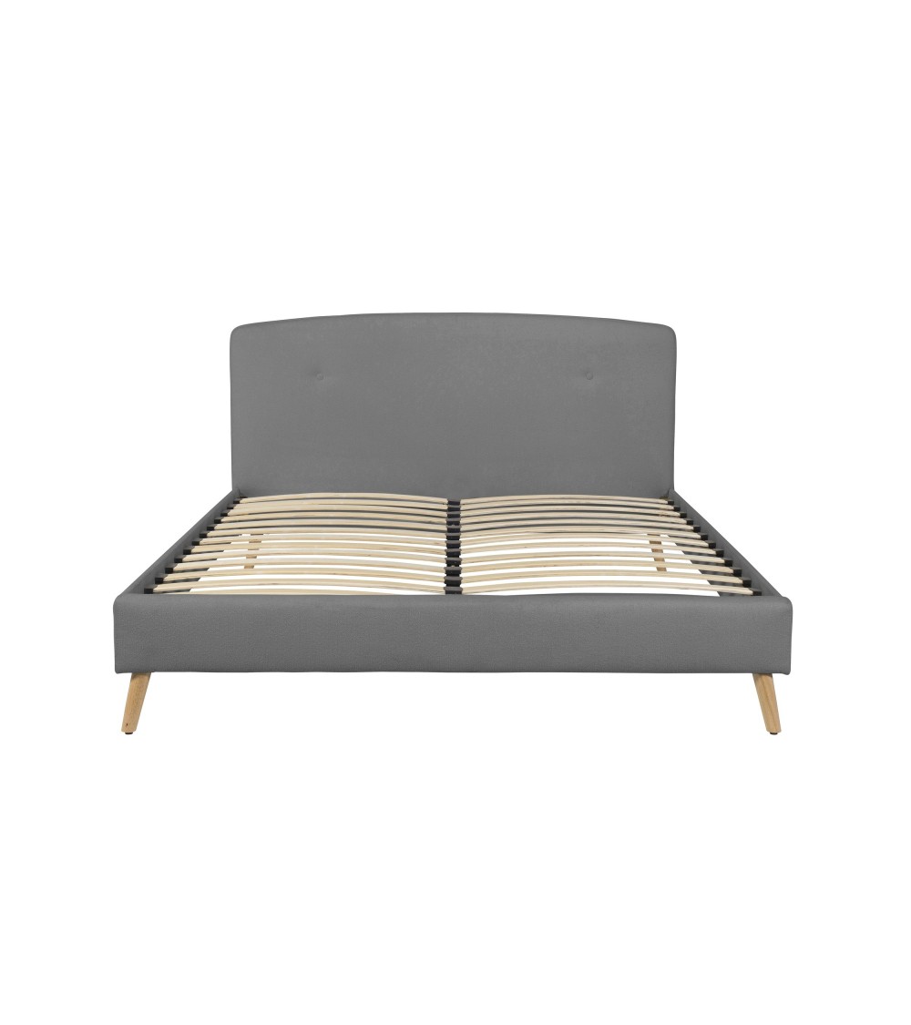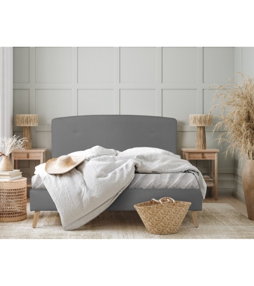 TARA est le lit qui donnera un nouvel air à votre chambre. Avec sa tête de lit lisse et aux bords arrondis, ce dernier se mariera avec le reste de votre pièce sans aucune difficulté. Designé et fabriqué en France, TARA vous offre une qualité incomparable. Son tissu bouclettes habillera votre chambre en finesse, tandis que ses pieds en bois massif vernis apporteront quant à eux plus de caractère. On apprécie également son sommier à lattes en bois, très robuste.Pour finir, TARA est disponible en 3 coloris - écru, gris clair ou encore ocre.Caractéristiques -. 6 pieds inclinés en bois naturel vernis. Sommier à lattes 160x200 inclus. Matelas non inclus. 13 lattes. Hauteur jusqu'au sommier - 33cm. Hauteur des pieds - 16cm. Charge maximum supportée - 2*110kg