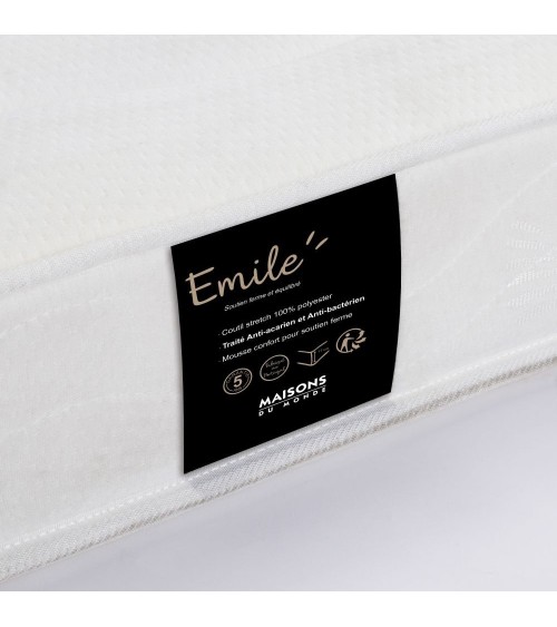Rien de tel que le matelas mousse polyuréthane 140x190 EMILE pour passer d'agréables nuits. Ses atouts ? Son matelas en mousse, confortable, épais et moelleux, et son revêtement anti.acariens et antibactériens. Résultat ? Vous allez pouvoir dormir sereinement avec ce matelas 140x190. Le must ? Il est adapté à tous les types de dormeurs. Un vrai plus !Quoi de mieux que de recevoir son matelas roulé compressé ? Qui dit petit format, dit également plus simple à transporter - pour lexpédition moins de camions seront mobilisés, de quoi ravir les écolos ! Autre avantage ? Ce format gain de place » vous permettra de bénéficier dune livraison rapide et sa prise en main sera facilitée. Du coup, vous pourrez linstaller sans encombre dans la pièce qui lui sera dédiée. Pas de panique - une fois déballé, il retrouvera sa forme normale au bout de 24h. Maintenant, vous navez plus quà lessayer !