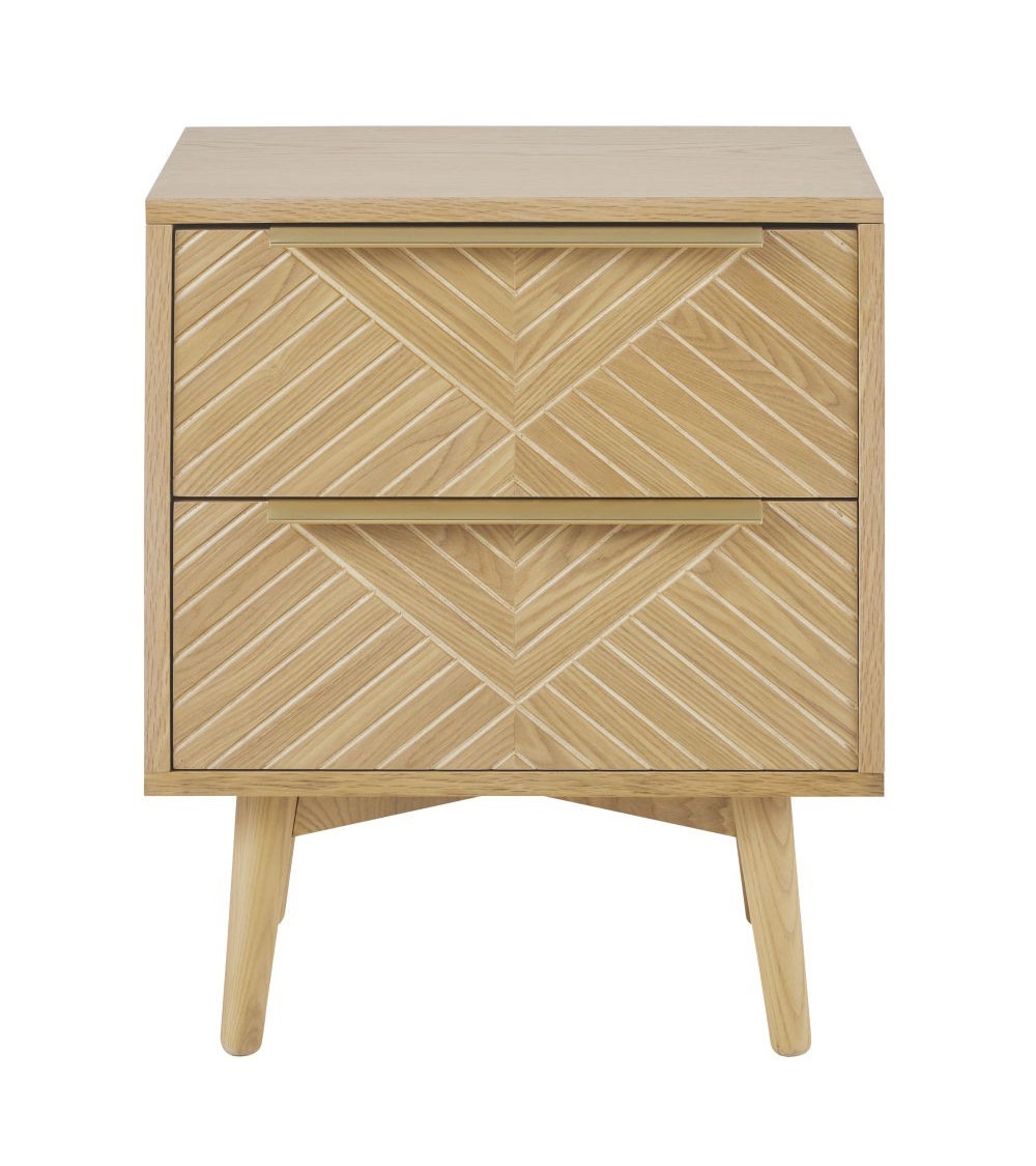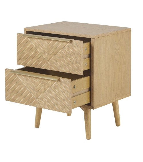 Chic et rétro, la table de chevet 2 tiroirs sculptée AXELLE a tout pour rejoindre le mobilier de votre chambre ! Ses lignes vintage s'offre une pointe d'élégance avec la façade de ses tiroirs sculptés et une poignée coloris laiton. Un rendu qui fera son petit effet près de votre lit. Une table de chevet pratique et esthétique - on lui dit oui sans hésiter !