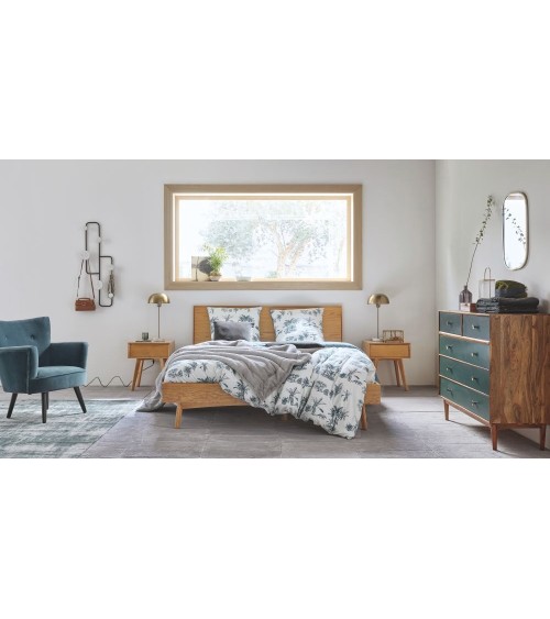 Pour passer une nuit revitalisante optez pour le lit vintage en chêne PORTOBELLO ! Il s'intègrera élégamment à un intérieur cosy et chaleureux. Sa structure en chêne finition miel et ses pieds obliques apportent une touche d'élégance et un esprit vintage à votre chambre. Sous ses formes épurées, ce lit en chêne est adapté pour un matelas 140x190 cm ainsi qu'un repos bien mérité. Présentez un compagnon de nuit à ce lit en interprétant une table de chevet délicate.Pour compléter votre lit, n'oubliez pas d'ajouter un sommier - réf 171490