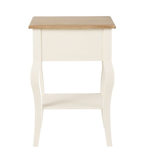 Aménagez votre chambre de charme avec la table de chevet 1 tiroir crème LEONTINE . En toute élégance avec ses jolis pieds galbés, ce chevet couleur crème complètera votre univers féminin et raffiné ! Doté d'un tiroir et d'une étagère fixe, ce petit meuble de rangement accueillera des accessoires et des objets de décoration. Agrémentez-la d'une jolie lampe et d'un réveil matin, un brin vintage. Effet garanti !
