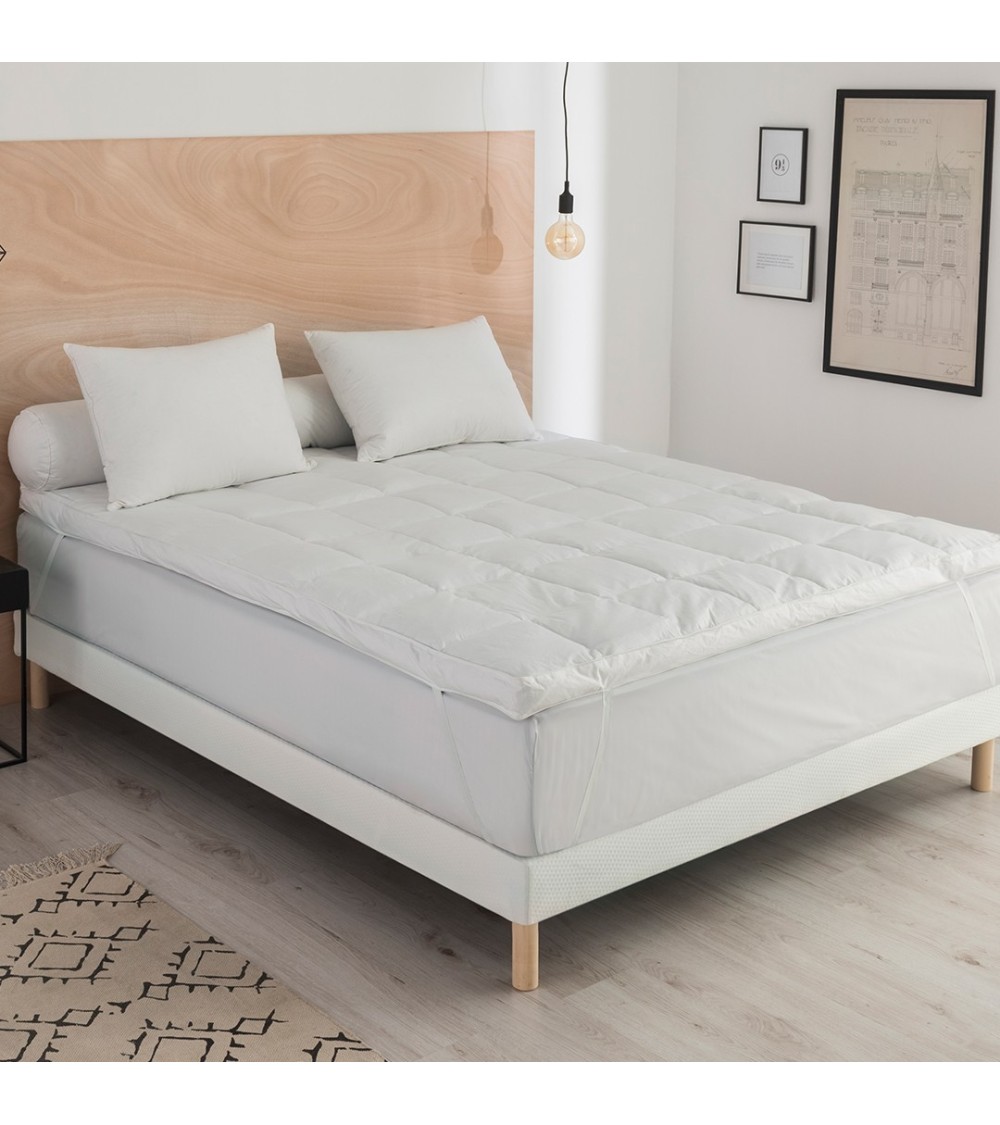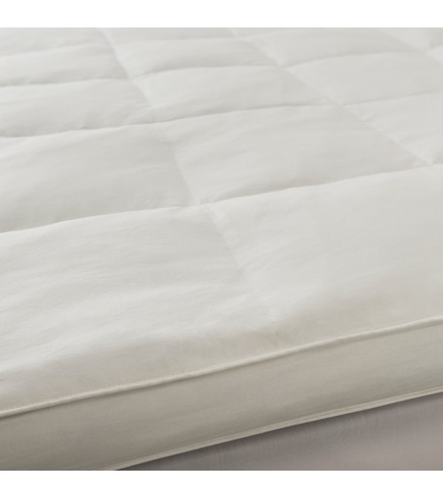 Optez pour un surmatelas 100% naturel doux et ferme. Ce Surmatelas Surconfort® permet de compenser le manque de confort du matelas en ajoutant un supplément de douceur qui donne au corps la sensation d'être enveloppé dans un cocoon. Les plus grands palaces ont choisi ce Surmatelas Surconfort® doux et ferme à base de plumettes. Tous nos garnissages naturels sont lavés, triés, stérilisés et traités contre les acariens pour protéger les personnes sujettes aux allergies. Ces étapes sont parfaitement maîtrisées car réalisées dans nos usines françaises.L'enveloppe en sergé de coton est étudiée pour adoucir les sensations du corps en contact avec le Surmatelas Surconfort®. Ses finitions sont soigneusement contrôlées pour empêcher le duvet de s'échapper.Composition du tissu : 100% coton sergé - Composition du garnissage : 90% plumettes 10% duvet d'oie et de canardLes informations environnementales de ce produit sont les suivantes : produit majoritairement recyclable, composé à minima de 0% de matières recyclées, ne comporte pas de substances dangereuses.